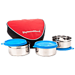 Signoraware Sleek Steel Lunch Box - Leakproof, Blue, 350 ml (Set of 3)