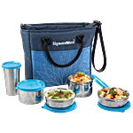 Signoraware Officier Steel Lunch Box Set With Blue Bag - Durable, Leakproof, 5 pcs