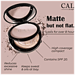 CAL Losangeles Finish Up Matte Compact SPF 20 helps minimize the appearance of lines, will enhance luminosity and deliver sheer colour. The finishing compact powder applies smoothly and imparts a natural-looking finish. It helps to control shine and excess oil for at least 8 hrs. Matte but not flat. Sheer coverage compact. Contains SPF 20. Keeps sweat & oils at bay. Locks in your makeup for over 8 hours. Reduces excessive shine & appearance of pores