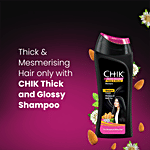 Chik thick & glossy black shampoo contains the goodness of black tea, badam protein & Bhringraj oil. It helps to enhance hair shine & strengthens your hair thereby, giving you thicker-looking & glossy hair. Get gorgeous-looking shiny hair with regular use of Chik Thick & Glossy Black Shampoo. It reduces hair fall due to hair breakage. Based on a consumer research study done in 2016.