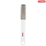 Titania Foot Filer is made of stainless steel. It is designed to remove hard skin from feet and hands. It is gentle on your skin and thoroughly removes calluses and rough skin. This foot filer is a great exfoliating scrubber to remove minor rough, cracked, dead skin on the heels. It is safe and easy to use.