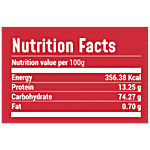 Nutrition per gram/ml: 100g Energy: 356.38 Kcal Protein: 13.25 g Carbohydrate: 74.27 g Fat: 0.70 g