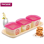 Trueware Daffodil Airtight Containers With Tray - BPA Free, For Storing & Serving Dry Fruits, Snacks, 4 pcs (Set of 3 )