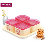 Daffodil Set of 4 beautiful tableware set with tray is made from high-quality plastic. These bowls are break-resistant, heat resistant, dish wash safe, stain-resistant and freezer safe. These products are made with taking extensive care. It is used to serve any type of meal. They are easy to clean and durable enough to withstand drops without shattering. These are ideal for regular kitchen use for dining and serving with delights. It consists of airtight containers, ideal for serving and storing dry fruits and other dry snacks.
