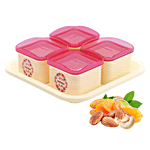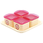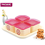 Trueware Daffodil Airtight Container 2 With Tray - Storage / Serving Jars, BPA Free, For Dry Fruits, Snacks, Pink, 5 pcs (Set of 4)