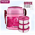 Trueware Office Plus 2 Insulated Lunch Box - With Stainless Steel Containers, Pink, 1 pc (300 ml x 2, 200 ml x 1)