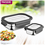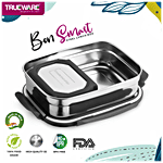 Trueware Bon Smart Stainless Steel Tiffin Box - With Veggie Container, Grey, 2 pcs (800 ml + 100 ml)