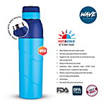 Trueware Wave 950 Water Bottle - Steel Inner With Wide Mouth, Blue, 800 ml