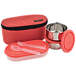Trueware Plastic Lunch Box With Stainless Steel Containers - Elite , Insulated, Air Tight, Leakproof, Red, 1 pc