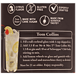 The Mr & Mrs Tom Collins Mix is equipped with all you need to cool down on a sizzling summer day. History's most enduring cocktail, Tom Collins, is not easy to prepare with this exquisite cocktail mix. Master the art of the classic Tom Collins cocktail by adding three twists - Gin, lemon, soda water mixed with this cocktail mix over plenty of ice in a Collins glass, stir gently and garnish with a wedge of savory lemon. With just one sip, you'll discover why the Tom Collins cocktail is a true vintage. Explore the wide range of cocktail mixes by Mr and Mrs only on Big Basket.