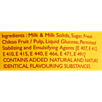Milk & Milk Solids, Sugar, Fresh Chikoo Fruit/ Pulp, Liquid Glucose, Permitted Stabilizing & Emulsifying Agents (E 407, E410, E412, E415, E440, E466, E471, E491).