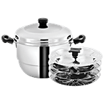 Pigeon Stainless Steel Idli Maker with Steamer Hot is a durable and sturdy stainless steel idli maker. This idli maker is a multi-purpose kadai that has idli plates and a lid. It is a simple and convenient idli maker that is a great addition to your cookware collection. You can use it on an induction cooktop and gas stove as well. It is an ideal choice for anyone who likes this healthy South Indian delicacy.
