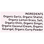 Organic Garlic, Shallot, Lemon Grass, Salt, Organic Chilli, Organic Ginger, Organic Coconut Cream, Organic Curry Powder.