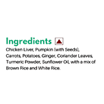 Fresh Chicken Liver Fresh Pumpkin (with Pumpkin Seeds) Fresh Carrots Fresh Potatoes Fresh Ginger Fresh Coriander Leaves Turmeric Powder Sunflower Oil Brown Rice White Rice