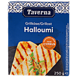 Taverna Halloumi cheese is a semihard, unripened made from a mixture of goats and sheeps milk. Its texture is described as squeaky. It has a high melting point and so can easily be fried or grilled. Serve it on its own with a plate of olives, peppers, olive oil and bread or use it in pies, salads, or veggies.