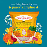 Mangalam Camphor Small Round burns instantly and does not require much effort. It cures inherent Vaastu faults and remove all ill effects. The flame lasts the duration of your aarti. It is free from harmful chemicals, pesticides & no additives. Pooja with pure camphor tablets symbolises union with God. They don't leave behind any residue.