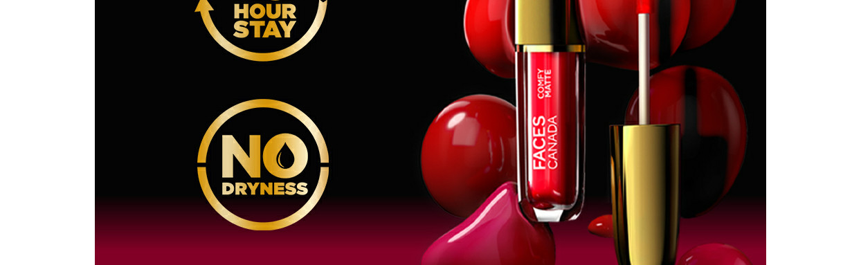 A liquid lipstick that stays for long and feels comfortable at the same time, doesn’t feel real? Faces Canada is making a promise no one has ever dared to make. Faces Canada Comfy Matte Lip Color - A liquid lipstick that renders an intense matte finish that won’t budge for up to 10 hours. A groundbreaking product when it comes to liquid lipsticks, the Comfy Matte Lip Color is infused with lip-loving ingredients, Almond Oil & Vitamin E to keep your lips hydrated while the lipstick leaves behind a beautiful matte pout. Faces Canada Comfy Matte Lip Color is the perfect balance of natural ingredients and Paraben, Alcohol-free. Voted the most comfortable matte lipstick, Faces Canada Comfy Matte Lip Color will give you the best of both worlds, long wear & comfort. Available in 12 head-turning shades that will look amazing on all skin tones, it is a challenge that this lipstick will become a favourite from the moment, you try it.