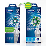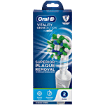 Vitality from Oral B #1 brand recommended by dentists worldwide. This brush helps you brush like your dentist recommends for 2 minutes with the professional timer. While you are moving the brush around your mouth, the Cross Action toothbrush head surrounds each tooth with bristles angled at 16 degrees, and 2D cleaning action oscillates and rotates for better plaque removal than a regular manual toothbrush. The Toothbrush is powered by Braun - World leader in electric toothbrushes.