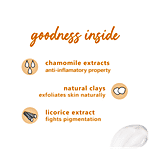 Chamomile Extracts, White Tea extracts, Ginkgo Biloba Extracts, Natural Clays & Licorice Extract.