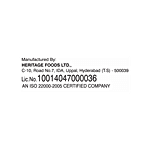 Manufactured & Marketed address by: Heritage Foods Ltd, C-10, Road No.7,IDA, Uppal, Hyderabad (T.S)-500039