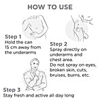 Hold upright and spray 10-15 cm away from the body/clothes.