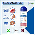 Dr Foot Antibacterial & Antiseptic Foot Powder helps relieve your symptoms of chafing, itching, burning and scaling skin caused by fungus. People are most susceptible to athlete's foot when their feet are sweating or lack proper ventilation. Dr Foot Anti-bacterial and anti-septic foot powder contain Povidone iodine which is safe and effective. Dr Foot Antibacterial & Antiseptic Foot Powder helps in treating diabetic ulcer. Our Ingredients Are Made with Cruelty Free, Paraben Free, Dermatologist Tested, Safe for All Skin Type. A foot powder that absorbs all sweat helps reduce bacteria that cause odor and refreshes your feet with a delightful fresh mint fragrance that keeps your feet feeling fresh & light – day long. Helps to foot ulcer and reduces foot skin infection. Contains a special cooling ingredient to help keep feet comfortable and refreshed.