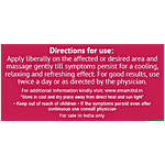 1. Apply liberally on the affected or desired area and massage gently till symptoms persist for a cooling, relaxing and refreshing effect.