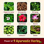 Bhringaraj, Peppermint, Karchur, Brahmi, Aswagandha, Amla, Saileya, Japa Pushpa, Latakasturi, Sweet Almond Oil