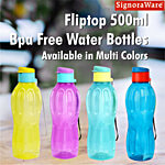 Signoraware Fliptop Aqua Bottle - Durable, Easy To Carry, Blue, 500 ml