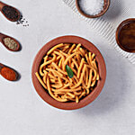 Rice Flour (40%), Refined Palmolein Oil, Black Gram Flour, Roasted Chickpea Flour, Sabudana Flour, Salt, Red Chilli Powder, Sesame, and Ajwain.