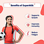 Gritzo SuperMilk for 13+ Girls is a nutritional supplement for girls that provides 13g protein per serving i.e. 24% more RDA protein than other protein drinks for kids. It contains high-quality protein that is fast-absorbing with the highest digestibility score (PDCAAS = 1). It provides 21 essential vitamins, minerals, and electrolytes. Keeping in mind the special needs of girls, it has turmeric, cranberry, and biotin for its antioxidant and anti-bacterial properties. This nutrition powder for kids also provides 100% RDA of Vitamin D3 and B9. This nutrition drink for girls is scientifically formulated to provide macro and micronutrients as per age, gender, and special needs. It is crafted after extensive research and strict quality checks to provide the absolute best nutrition to your teenager. Therefore, this nutrition drink for kids is free from gluten, malt, trans-fat, artificial colours, flavours, or refined sugar content. This vegetarian protein powder for kids is available in 100% natural double chocolate flavour.