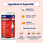 Gritzo SuperMilk for 13+ Girls is a nutritional supplement for girls that provides 13g protein per serving i.e. 24% more RDA protein than other protein drinks for kids. It contains high-quality protein that is fast-absorbing with the highest digestibility score (PDCAAS = 1). It provides 21 essential vitamins, minerals, and electrolytes. Keeping in mind the special needs of girls, it has turmeric, cranberry, and biotin for its antioxidant and anti-bacterial properties. This nutrition powder for kids also provides 100% RDA of Vitamin D3 and B9. This nutrition drink for girls is scientifically formulated to provide macro and micronutrients as per age, gender, and special needs. It is crafted after extensive research and strict quality checks to provide the absolute best nutrition to your teenager. Therefore, this nutrition drink for kids is free from gluten, malt, trans-fat, artificial colours, flavours, or refined sugar content. This vegetarian protein powder for kids is available in 100% natural double chocolate flavour.
