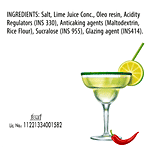 Salt, Lime Juice Conc., Oleo Resin, Acidity Regulators (INS 330), Anticaking agents (Maltodextrin, Rice Flour), Sucralose (INS 955), Glazing agent (INS414).