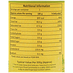 Nutrition per gram/ml: 100g Serving Size: 1 serving Energy: 899 kcal Total Fat: 99.9 g Saturated Fat: 47.6 g Trans fat: 0.0 g Carbohydrate: 0.0 g Total Sugars: 0.0 g Added Sugar: 0.0 g Protein: 0.0 g Cholesterol: 220.4 mg Sodium: 0.1 mg