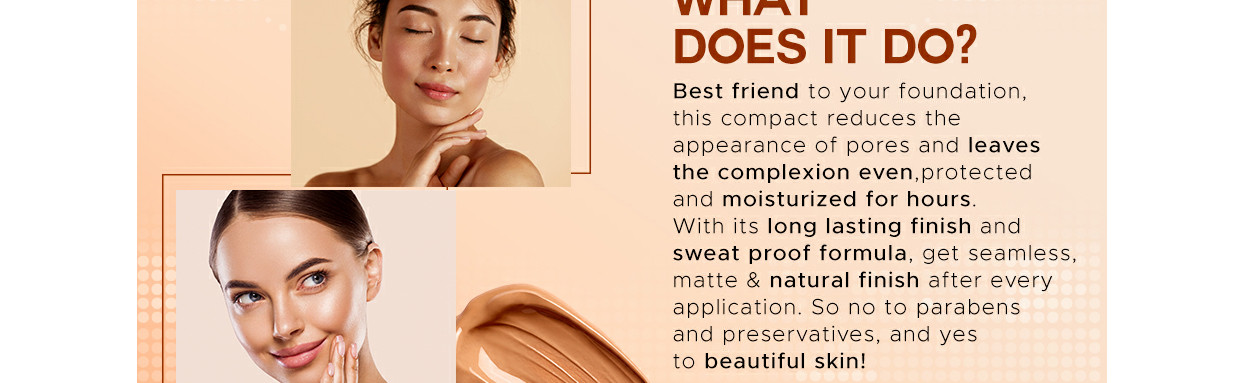24hrs Wear Weightless Powder Foundation is an all-inclusive foundation that comes in Super ‘16’ shades that match 30 shades of foundation. Best friend to your foundation, this compact reduces the appearance of pores and leaves the complexion even, protected and moisturized for hours. With its long-lasting finish and sweat-proof formula, get a seamless, matte & natural finish after every application. So no to parabens and preservatives, and yes to beautiful skin!