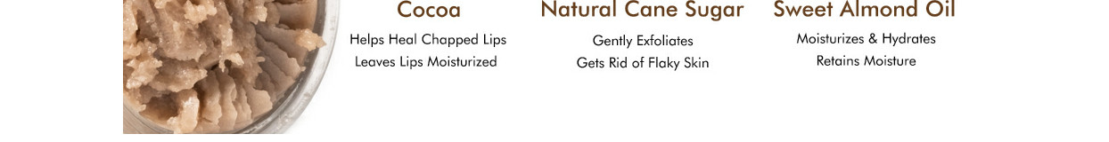 Gentle Chocolatey exfoliation for your lips! Choco Lip Scrub gently exfoliates with the particles of Natural Cane Sugar to get rid of dead skin. Loaded with super nourishing Cocoa Butter, the lip scrub removes chapped and flaky skin and leaves the lips moisturized. With an aroma that is like the sweet and irresistible richness of Chocolate, the Choco Lip Scrub is something you would come back to repeatedly. The Choco Lip Scrub contains ingredients such as Natural Cane Sugar, Cocoa Butter, Sweet Almond Oil, and Caffeine-rich Cocoa. Caffeine in Cocoa repairs and hydrates chapped lips. Natural Cane sugar exfoliates the lips gently. Cocoa Butter deeply moisturizes dry lips and retains moisture. Sweet Almond Oil along with Caffeine-rich Cocoa moisturizes and hydrates the lips. Choco Lip Scrub is gender-neutral and suits all skin types. It is free from Paraben, SLS and Silicone. It is also FDA Approved, Dermatologically Tested, Made Safe, Peta Certified Cruelty-Free, 100% Vegan and free from beeswax.