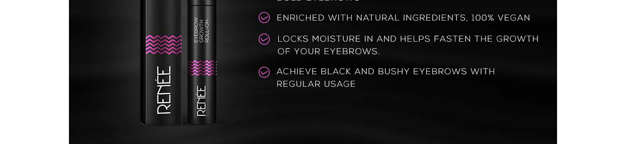 For Brows That Wow: Your eyebrows are an important face asset that make or break your entire makeup look. But how often do you really nourish them or tend to their needs? Renée is here to help you with exactly that. With our Eyebrow Growth Roll On, we help you grow naturally thick, black, and bold eyebrows. A vegan product, our roll on is enriched with natural ingredients and is free of toxins like sulphate, silicone, phthalate, and parabens. It is formulated to lock in the moisture and help fasten the growth of your eyebrows. With a hint of magic in our easy-to-use roll on, your eyebrows are only going to get thicker, bolder, richer. Just roll on and watch your brows grow on!