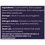 Cashew (94%), Black Pepper Seasoning (4%), [Stabiliser, Anticaking Agent, INS 551, Iodised Salt.