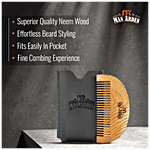 Man Arden Pure Neem Wooden Beard Comb - Pocket Size, Easy Styling, With Premium Faux Leather Pouch, 1 pc