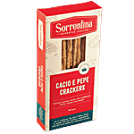 The Sorrentino Cacio E Pepe Crackers are the ideal treat to complete any party platter. Made using premium butter, aged parmesan cheese, mozzarella cheese and fresh black pepper these crackers are packed with flavour and spice. Prepared using the fusionist recipes of Chef Aabhas Mehrotra, these crackers are inspired by authentic Italian pasta. This pack of Cacio E Pepe Crackers are easy to carry and makes for the best tea-time snack or even adds superior flavours and crunch to your charcuterie board. Explore the wide range of Sorrentino Italian delicacies from pizza base to pesto rolls and more only on Big Basket.