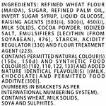 Refined Wheat Flour (Maida), Sugar, Refined Palm Oil, Invert Sugar Syrup, Liquid Glucose (1%), Raising Agents [INS 503(ii), INS 500(ii), INS 450(I)], Milk Solids, Cocoa Powder, Iodized Salt Emulsifiers [INS 322(I), INS 476], Starch, Acidity Regulator (NS 330) And Flour Treatment Agent (INS 223) Contains Permitted Natural Colour(S) (INS 150C, INS 150D) And Synthetic Food Colour(S) [E102,E110, E122, E133] And Added Nature Identical Flavour(S) [(Milk, Chocolate) And Permitted Food Additive (E300)]. (Numbers in brackets as per International Numbering System). It contains Wheat, Milk Solids, Soya And Sulphites.