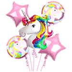 CherishX Magical Unicorn Rubber Balloon Bouquet - Birthday Decoration Items, For Kids, Multicolour, 5 pcs