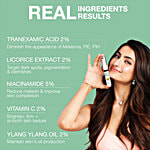 Niacinamide 5%, Ylang Ylang Oil 2%, Licorice Extract 2% Ethyl Ascorbic Acid 2%, Acetyl Glucosamine 2%, Glycolic Acid 2%, Alpha Arbutin 1%, Hyaluronic Acid 1%, Tranexamic Acid 1%, Xantham Gum 0.5%, Phenoxyethanol 0.1%, Sodium Gluconate 0.1%. Fragrance 0.01%.