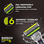 Dorco Pace 6 Pro Razor System - With 2 Cartridges, 6 Microspan Blades, Dual Smooth Shield, Vitamin E & Aloe Vera, Stying Trimmer, 2 pcs