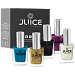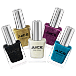 Juice Nail Polish - Pearly Black, Metallic Gold, Aqua Marin, Red Violet, Milky Way, Zero-chip, Heavily Pigmented, 55 ml (Pack of 5)