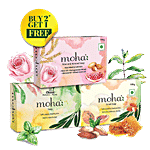 Uplift your bathing experience every morning with the goodness of nature and nourish your skin with deep-moisturising bathing bars with moha: Multi Soap Pack! This Multi Soap Pack comes with the goodness of multiple-natural herbs like rose, pomegranate, almond, wheatgerm, aloe vera, neem, tulsi and walnut for healthy, glowing and younger-looking skin. This pack consists of Herbal Soap, Rose and Almonds Soap and Scrub Soap.