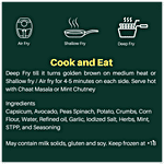 Capsicum, Avocado, Peas Spinach, Potato, Crumbs, Corn Flour, Water, Refined Oil, Garlic, Iodized Salt, Herbs, Mint, STPP, and Seasoning.