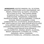 Water, mineral oil, glycerin, palmitic and stearic acid, niacinamide, isopropyl myristate, glyceryl stearate, butylene glycol, triethanolamine, hydroxyethyl urea, cetyl alcohol, dimethicone, fragrance, carbomer, phenoxyethanol, methylparaben, titanium dioxide, propylparaben, lysine carboxymethyl cysteinate, disodium EDTA, BHT, pentylene glycol and sodium acetylated hyaluronate and sodium hyaluronate crosspolymer and ethylhexylglycerin and hydrolysed sodium hyaluronate, alpha-isomethyl ionone, benzyl alcohol, benzyl benzoate, citronellol, citral, geraniol, hexyl cinnamal, hydroxycitronellol, limonene, linalool.