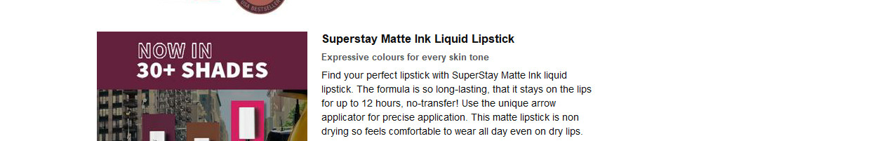 • Maybelline Superstay Matte Ink lipstick comes in an intensely pigmented formula.