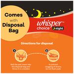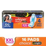 Whisper Choice Nights Sanitary Pads have 4 times back coverage that provides up to 100% protection from stains at night. Its longer length ensures that you can sleep without any worry about leakages, and its side safe wings keep the pad in place while you are sleeping.